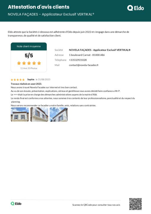 Étude et préconisation réalisées par Novela Façades (problèmes solutionnés)