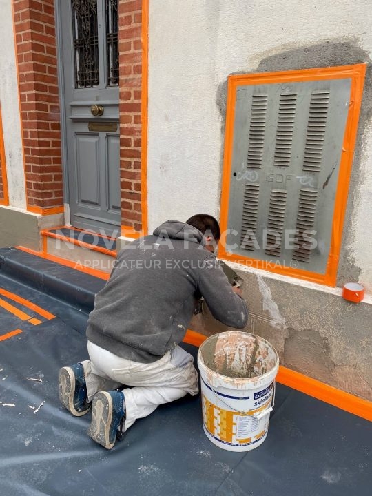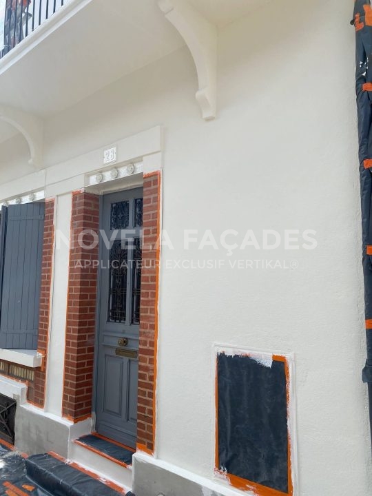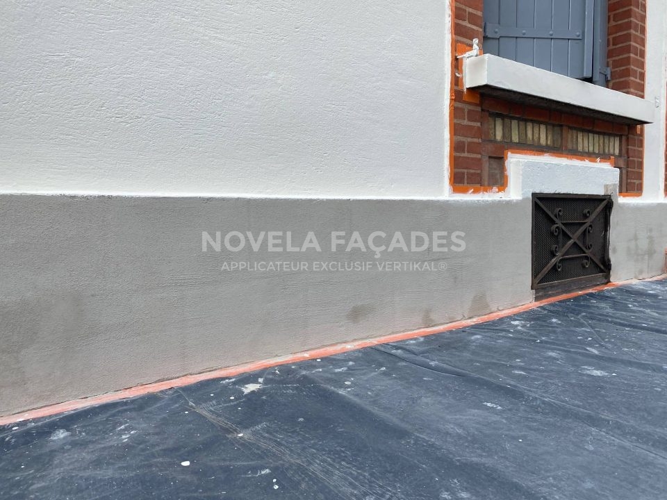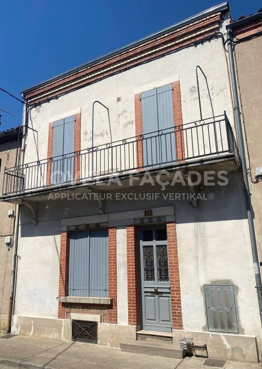 Les propriétaires nous ont contactés, car ils souhaitaient réparer les plus gros défauts et rajeunir par une couleur plus moderne la façade de leur maison tout en la protégeant des intempéries. En tant que façadier spécialisé en rénovation extérieure de maison individuelle sur Albi et le grand Albigeois, nous avons donc conseillé à nos clients après la préparation du support, l’application d’un film mince (peinture) épousant parfaitement le relief de la gamme VERTIKAL®. Fabriqué en France et plus précisément en Occitanie, il est constitué de charges minérales et de résines polysiloxanes apportant matité, imperméabilité aux eaux de ruissellement et remarquable perméabilité à la vapeur d’eau. Le VERTIKAL MINERAL a pour avantage d’être mat (il apporte à la finition une matité remarquable), imperméable (il protège des intempéries et ne mouille pas), microporeux (il laisse les murs respirer) et durable (il résiste aux rayons ultras violets et au vieillissement des teintes), ce qui lui permet de protéger pour de très nombreuses années les façades.