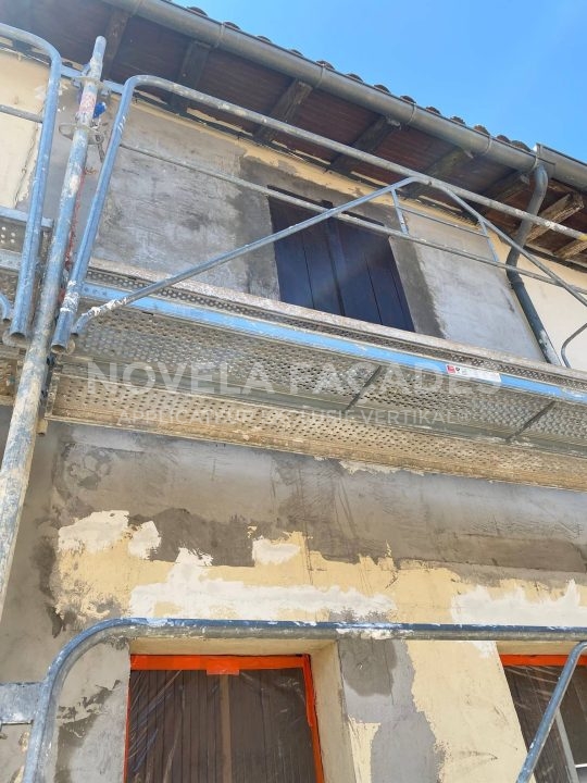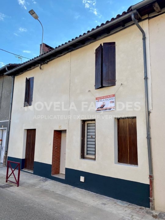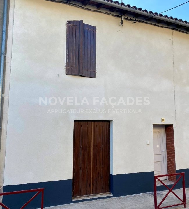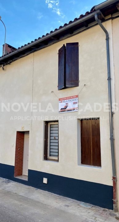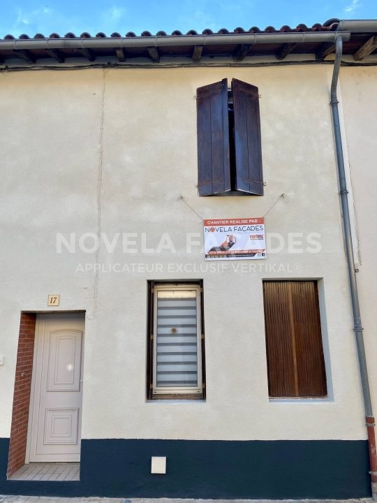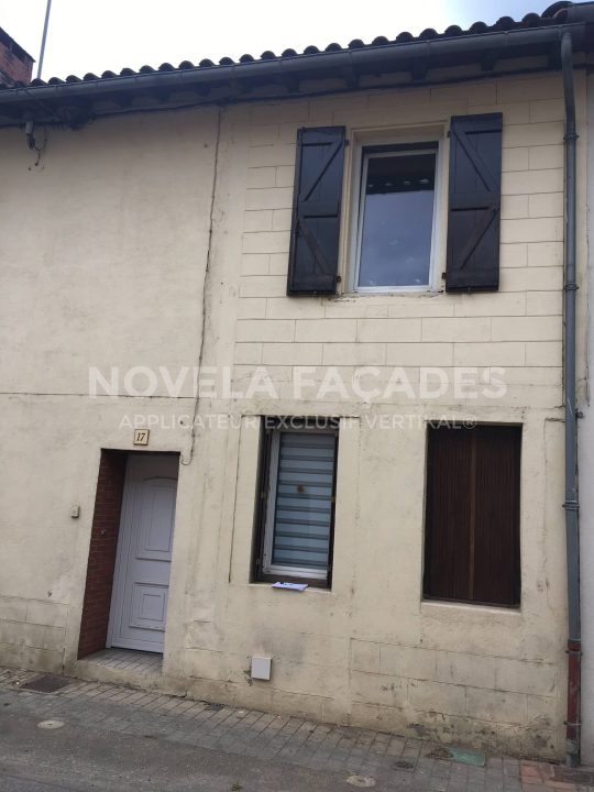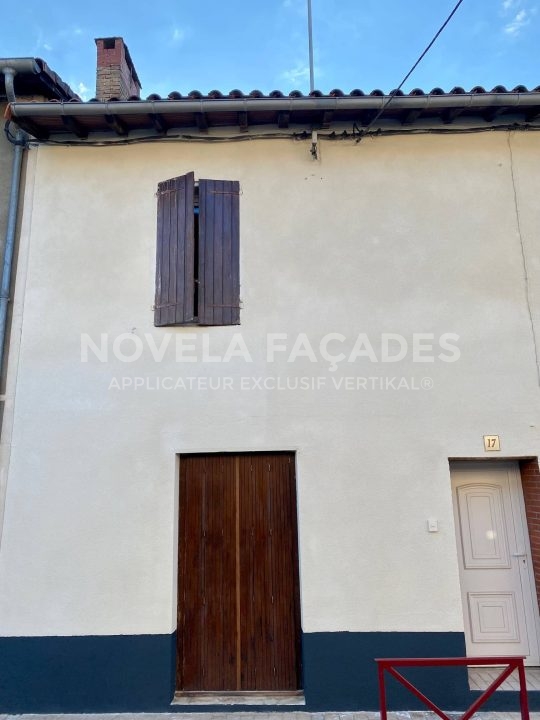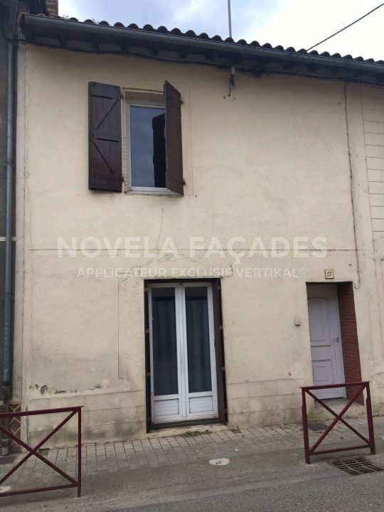 Aux portes de Lisle-sur-Tarn, la façade de cette maison située à Montans (81340) datant de 1850 était recouverte d’une peinture plastifiée non respirante d’une couleur vieillissante (teinte fanée) et appliquée sur un relief non homogène. Etant située dans la rue principale du village et exposée à de la pollution atmosphérique (véhicules, cheminées), elle était sale et s’était dégradée avec le temps.