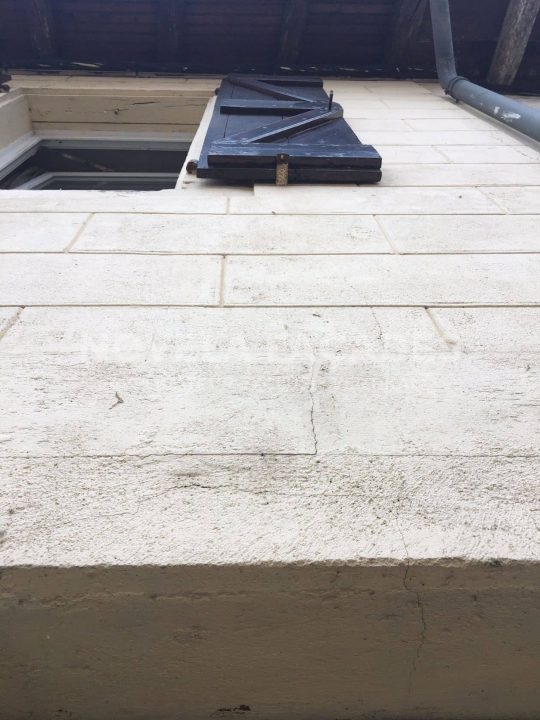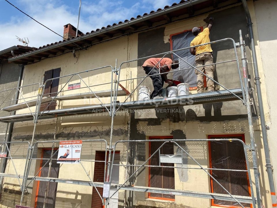 La cliente souhaitait redonner de la modernité à sa maison en uniformisant au maximum sa façade en supprimant les différents reliefs. Pour la rénovation de façade de cette maison individuelle située à 20 minutes d’Albi, après avoir neutralisé les sels grâce un traitement anti-salpêtre en soubassement et suite à la préparation du support, nous avons appliqué un Revêtement Epais Structuré de la gamme VERTIKAL® qui s’applique sous forme de projection. Le VERTIQUARTZ PRO PG 50 chargé en résine a pour avantage d’être décoratif (il permet d’éliminer les légers défauts de planéité du support), souple (il résiste aux effets de dilatation des fissures), imperméable (il protège des intempéries et ne mouille pas), microporeux (il laisse les murs respirer) et durable (très bonne résistance aux rayons ultras violets et au vieillissement des teintes).
